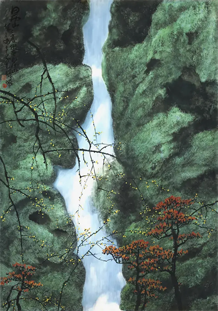 Subtle, fine brushwork and freehand brushwork blend into one. White lines are formed through the delicate, refined, marvelous application of ink rather than through the use of white paint. The artist produces the effect of a realistic painting with meticulous attention to detail even though He applies the freehand style.