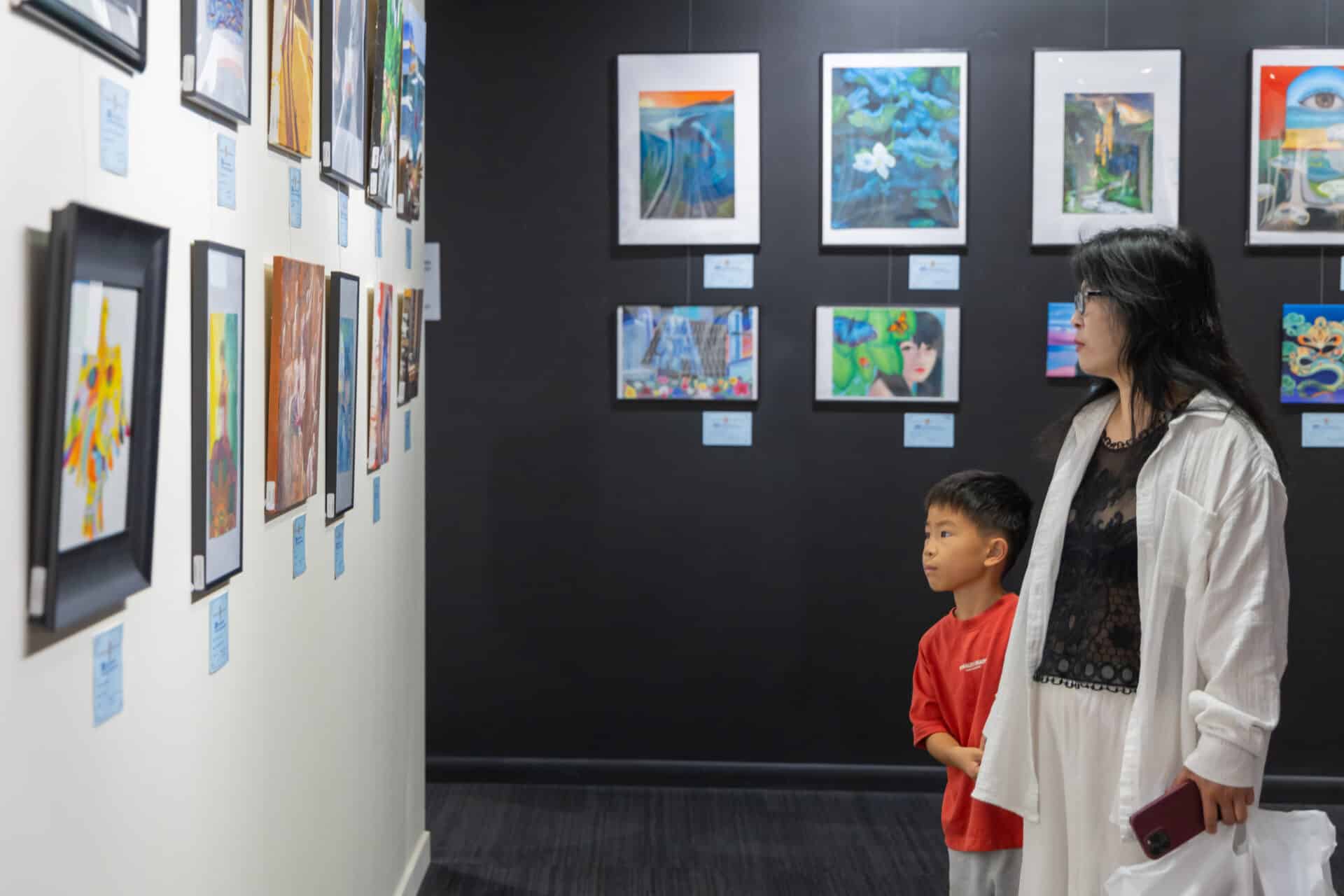 The Grand Exhibition Hall offers over 4,500 square feet of exhibition space, providing ample room for larger exhibitions and a variety of artwork displays across numerous walls and configurations.