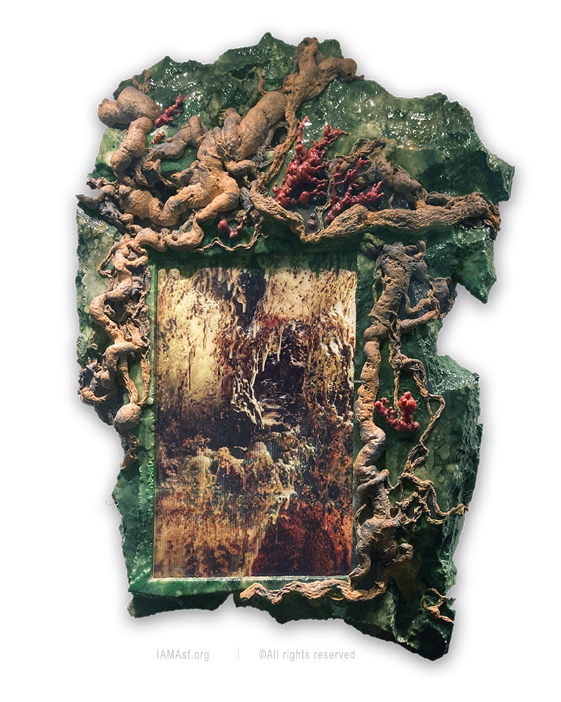 This art frame has an air of simple elegance, purity, and understated charm. It naturally captures the spirit and form of real withered vines. Both faux withered vines and faux ancient jade are first sculpted using Yun Sculpture techniques and then painted in oils. Withered vines sculpted by H.H. Dorje Chang Buddha III are of the highest artistic quality and possess the following four special characteristics for the viewer’s appreciation: (1) Their appeal is aptly described by four words: old, withered, dry, and beautiful. (2) Their style embodies four attributes: scholarliness, absence of mediocrity, high elegance, and a comforting air. (3) Their form and design present four properties: coiling in a natural way, totally genuine appearance, weathered over time, and intertwining. (4) Their texture has four unique features: the texture of having withered in different time periods; the texture of real vines with tiny pores; the lines and wrinkles follow the natural course of the vines; and the colors and appearances are just like those of real ancient vines.