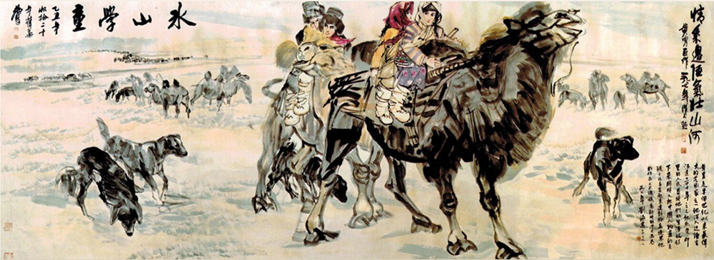 One of the most outstanding artists in contemporary Chinese history, Huang worked and lived in the frontier region of China for more than thirty years. With figures and animals as his main subjects, his freehand technique reached an incredible level of mastery. In fact, his paintings can be called historical scrolls of a new era.